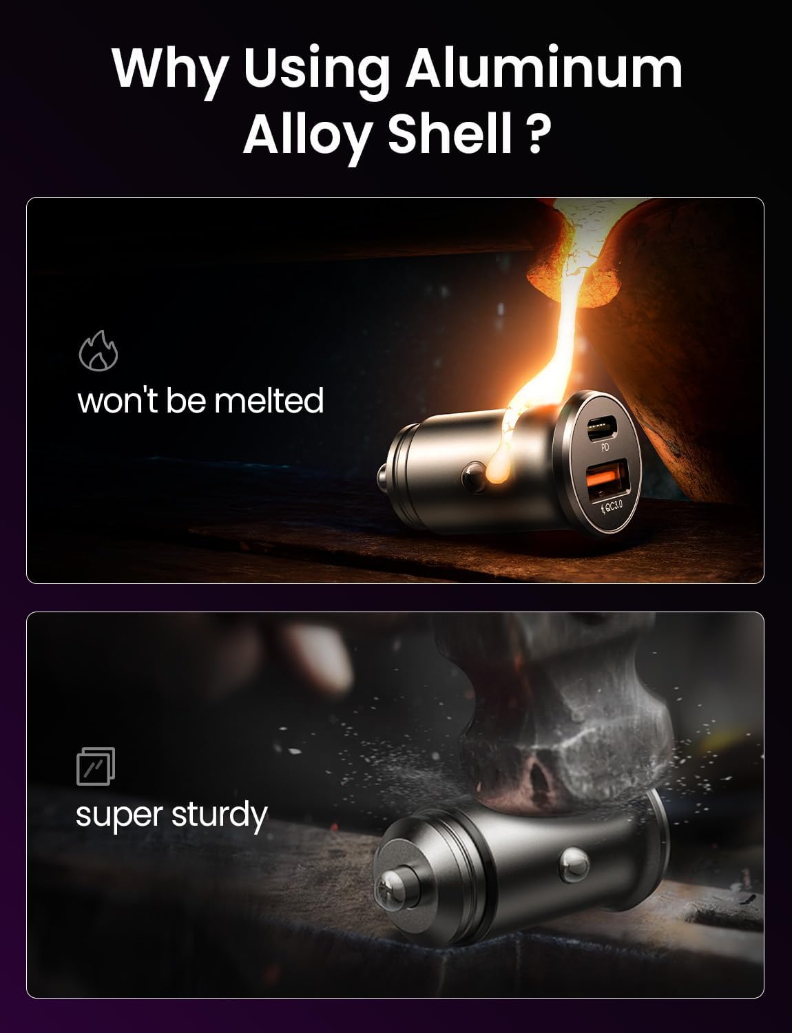 LISEN 54W Car Phone Charger USB C, Cigarette Lighter Adapter, Car Accessories for iPhone, USB C Car Charger Adapter USBC Type C 12v, for iPhone 17 Pro Max 16 15 14 13 12, Samsung Google iPad Andorid